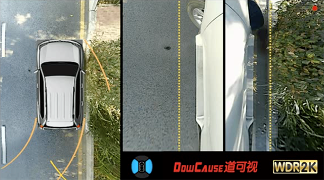 針對(duì)這一使用場(chǎng)景,在道可視的“側(cè)方位泊車模式”下,車輛前后、側(cè)面影像呈現(xiàn)了車身與障礙物的距離,再配合精準(zhǔn)動(dòng)態(tài)軌跡和側(cè)方位安全參考線,便能順利完成側(cè)方位停車。